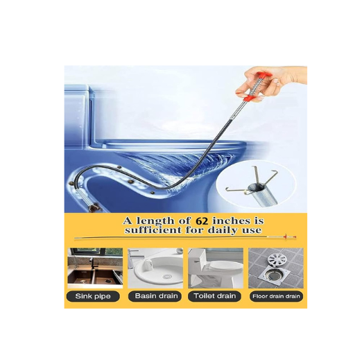 Stainless Steel Hair Catching Claw Drain Sewer Cleaner Spring Wire Sink Pipe Dredge Cleaning Stick Drain Plunger Unblocked Kitchen Bath Basin Hair Remover Tool - 5ft (160cm)