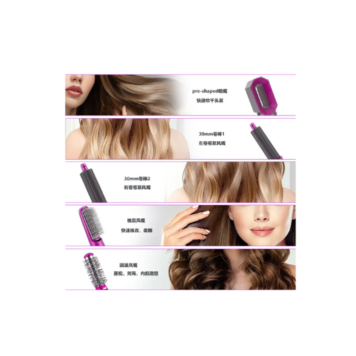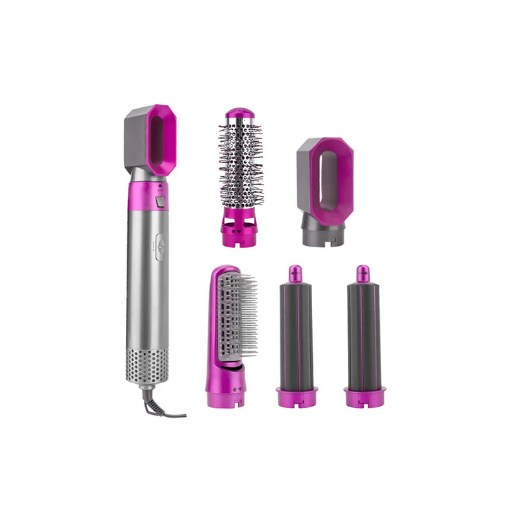 5 In 1 Hair Styler For Women Multifunctional Styling Tool With 5 Attachments 1 Hot Air Brush,2 Spiral Curler,1 Hair Dryer,1 Hair Straightner Comb.