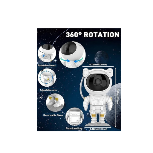 Easy to use: You may disassemble and spin the adorable astronaut head. With a 360° rotating arm, you can freely select the astronaut shape and star projection angle to create a beautiful and surreal atmosphere in your house.