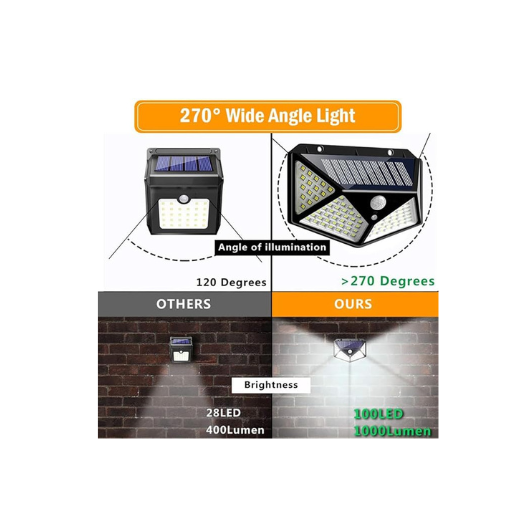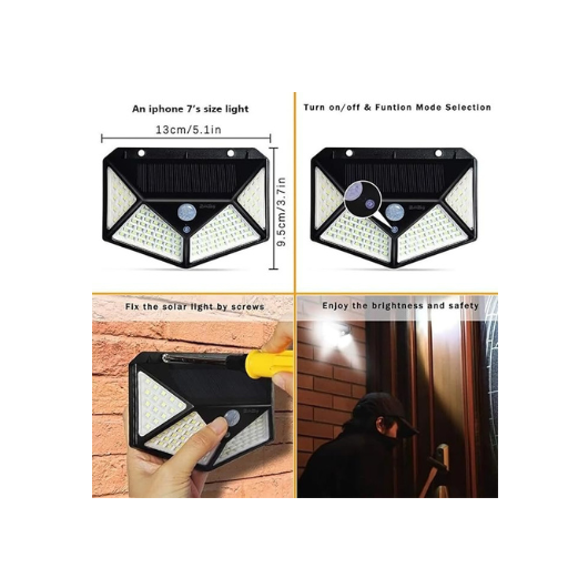 Solar Rechargeable Brick Wall Light Outdoor 100 LEDs Motion Sensor Light with Solar Panel with IP65 Protection, Waterproof with Wide Angle Lighting Pack of 1