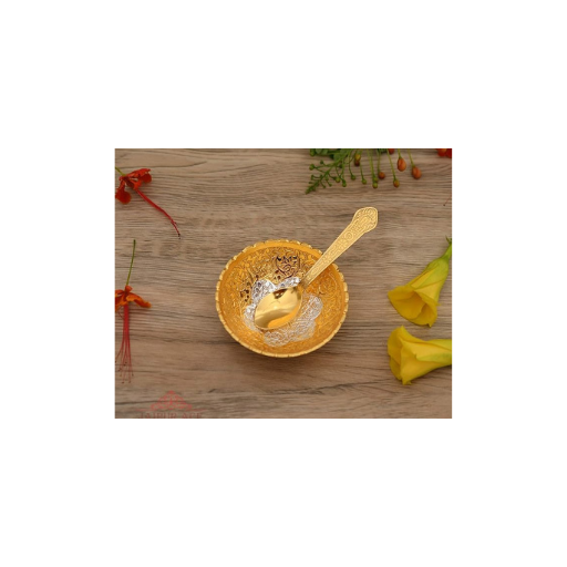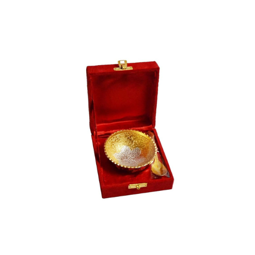 Premium Silver and Gold Plated Bowl Set (Bowl with Spoon) in Red Velvet Box 3.5 Inch Diameter
