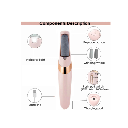 Flawless Pedi Electronic Pedicure Tool Cordless Rechargeable Callus Dead Skin Remover Polishing Wand with Roller Heads Flawless Pedi Electronic Pedicure Tool Callus Dead Skin Remover.