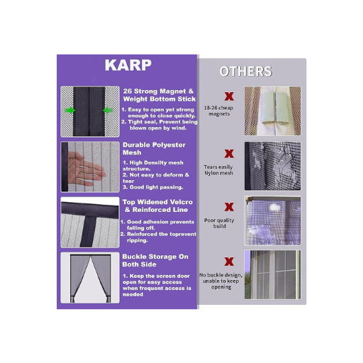 Mosquito Net for Door, Mosquito Door Curtain with Stay-Open Buckle, Auto-Closing Insect Screen to Keep Mosquito Out, Full Frame Hook & Loop for All Door Types