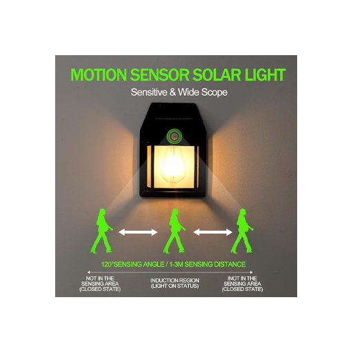 Solar Wall Lights Outdoor, Wireless Dusk to Dawn Porch Lights Fixture, Solar Wall Lantern with 3 Modes & Motion Sensor, Waterproof Exterior Lighting with Clear Panel for Entryway Front Door..