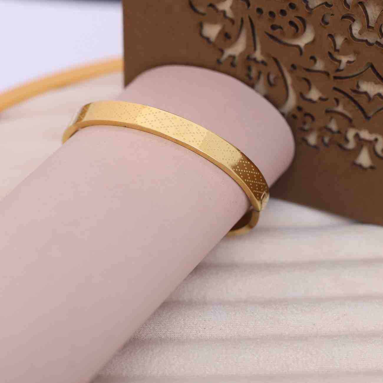 Elevate your style with this elegant men’s bracelet, featuring a sleek gold finish with subtle textured detailing.