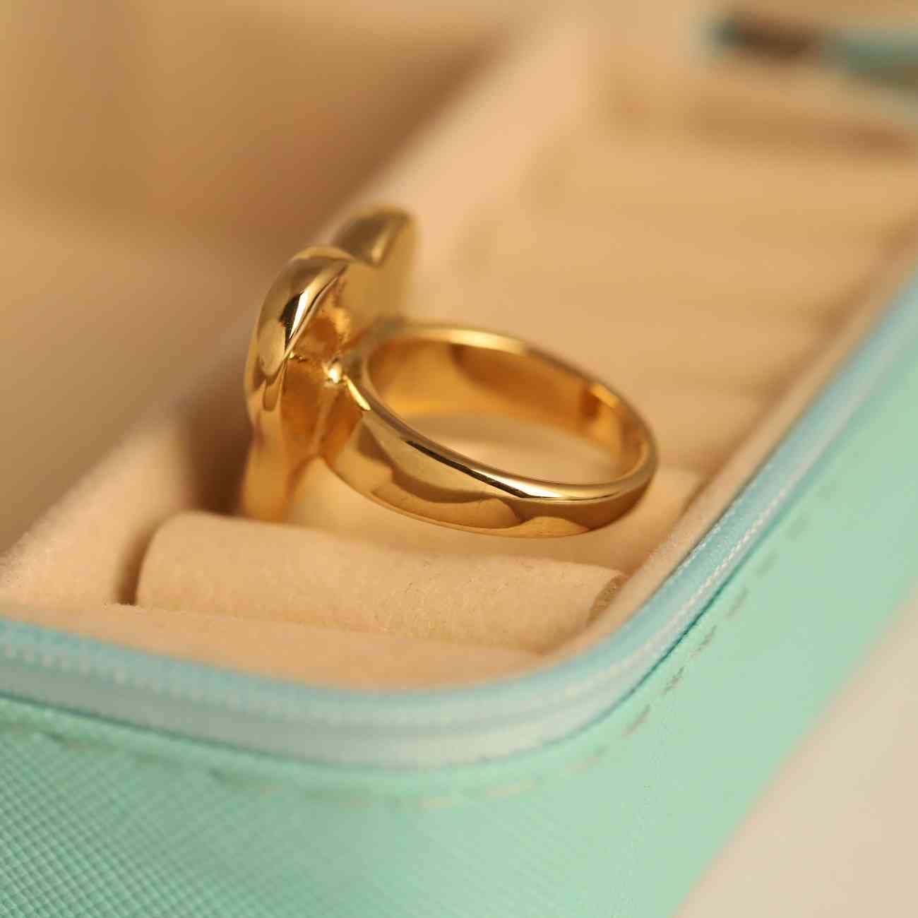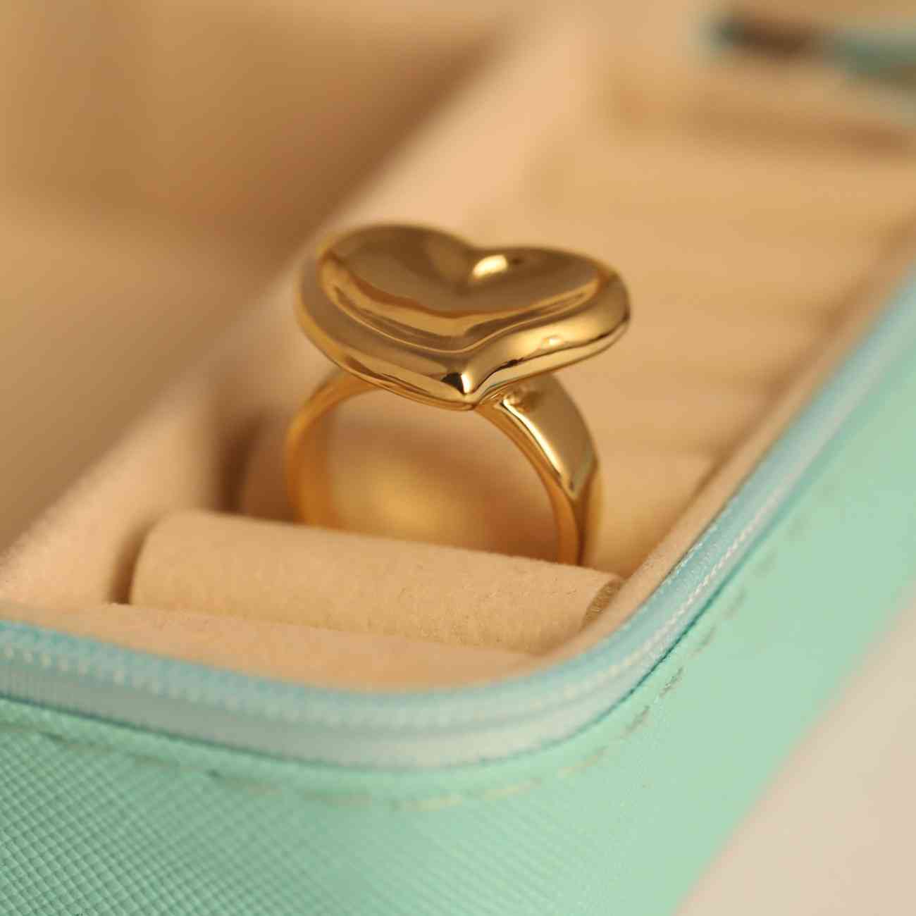A chic gold-plated heart-shaped ring with a smooth, polished finish, perfect for adding charm and elegance to any look.
