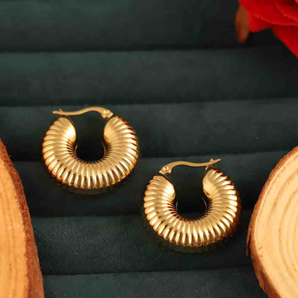Make a timeless statement with the Classic Textured Gold Hoop Earrings.