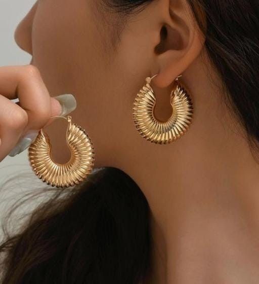 Make a timeless statement with the Classic Textured Gold Hoop Earrings. Featuring a bold round silhouette with a ribbed texture, these earrings combine vintage charm with modern elegance. Perfect for everyday wear or special occasions, their lightweight design ensures comfort while their polished gold finish adds effortless sophistication to any outfit.