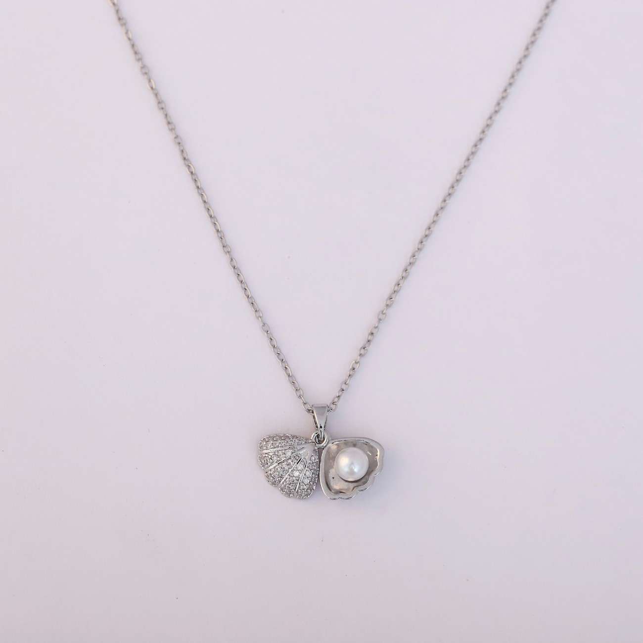 The Sparkling Seashell Pearl Necklace is a timeless piece inspired by the treasures of the sea. This delicate pendant features a seashell design encrusted with shimmering crystals, opening to reveal a lustrous pearl inside.