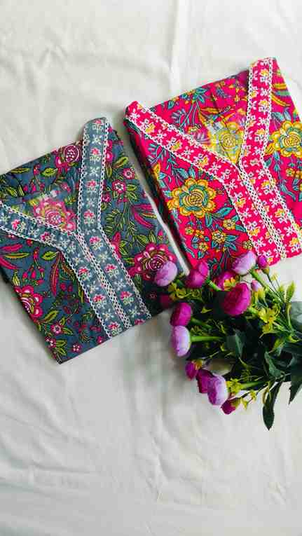 Add elegance to your wardrobe with this Floral Printed Cotton Kurti Top. Designed in a classic black base adorned with pink floral motifs, it features intricate embroidery on the neckline and sleeve borders, giving it a touch of ethnic charm. The breathable cotton fabric ensures all-day comfort, while the tailored fit and flowy hemline make it versatile for both casual and semi-formal occasions.