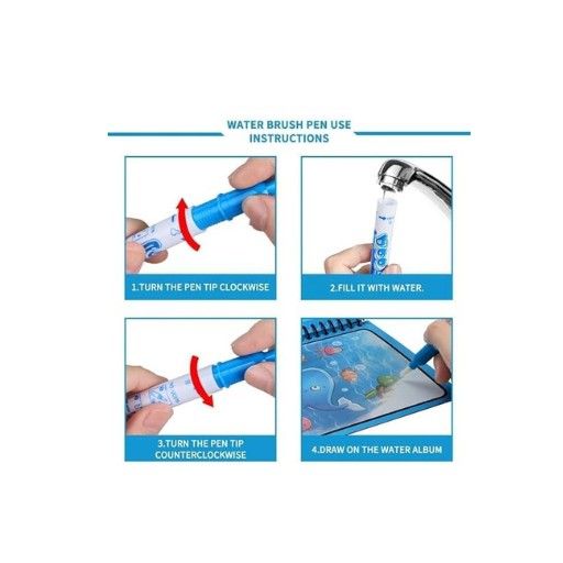 Mess-Free Fun: The PLUSPOINT Magic Quick Dry Water Book provides a mess-free drawing experience for kids, as they use a special water pen to reveal vibrant colors and patterns that disappear as the water evaporates, allowing for endless reuse and creative fun without any mess.