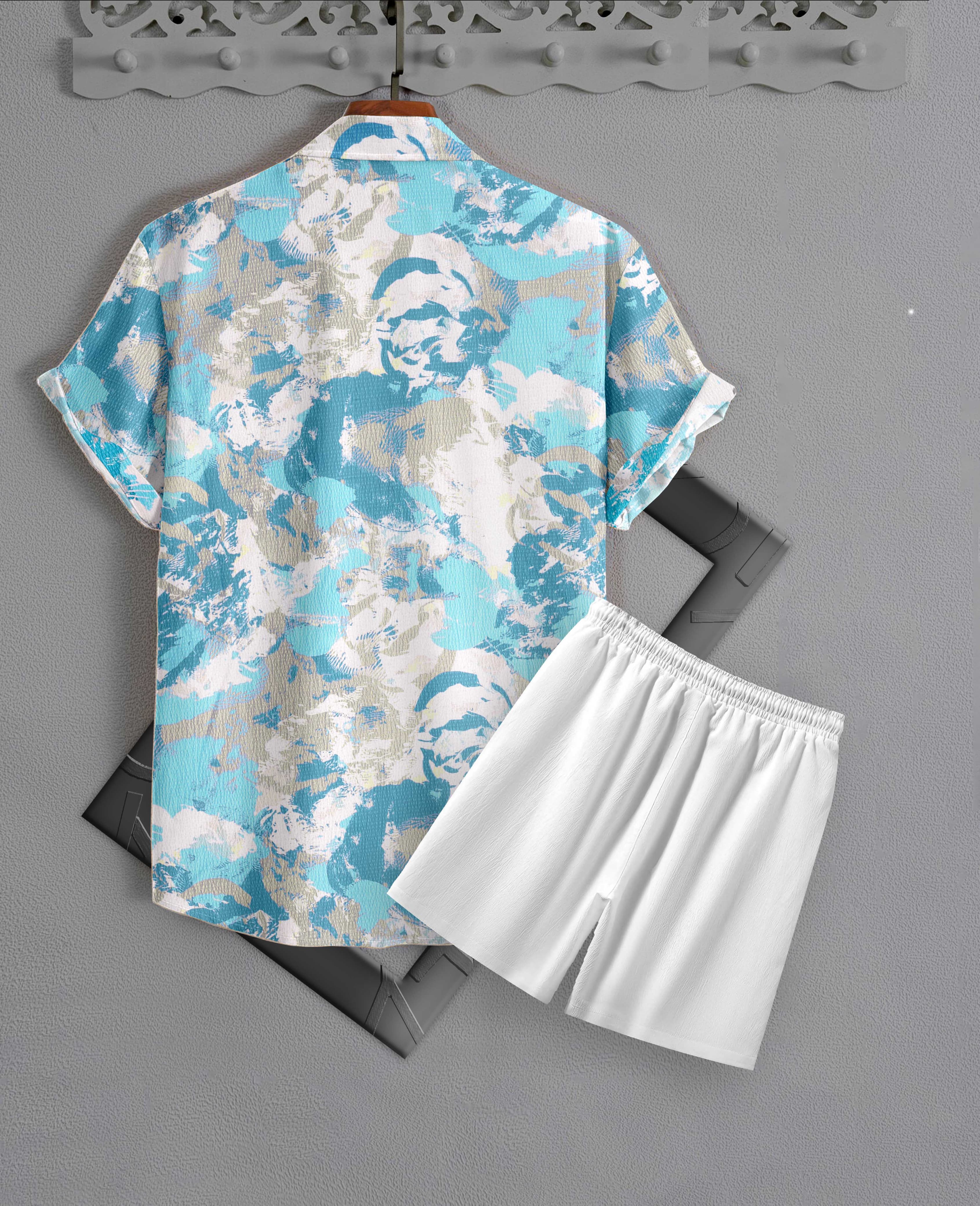 Upgrade your loungewear collection with this Men’s Blue Abstract Print Night Suit. Designed with a unique splash-style abstract pattern, the half-sleeve button-down shirt pairs perfectly with the elastic-waist shorts for a relaxed fit. Crafted from breathable and soft fabric, this set is ideal for summer nights, weekend lounging, or casual indoor wear. Its trendy design and easy fit make it a versatile choice for men who want both comfort and style at home.