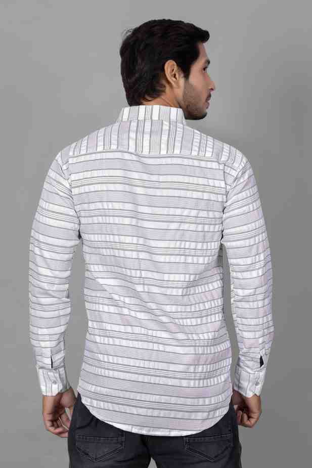 Add a modern touch to your wardrobe with this Men’s White & Green Striped Casual Shirt. Made from premium-quality breathable fabric, this shirt offers all-day comfort while keeping you stylish. The subtle green horizontal stripes over a crisp white base give it a unique yet versatile appeal.