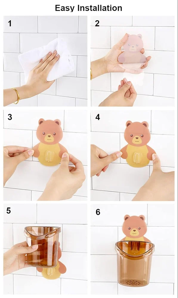 MI Toothbrush Holder (Set of 2 Pcs) Plastic Stand for Toothpaste, Comb, Brush, Cream, Lotion Kids Bathroom Cup Drain Waterproof Self-Adhesive, Teddy Bear HOME ORGANISATION, SPACE SAVER, MULTI-USE: This self-adhesive toothbrush holders container will help you organise the clutters to make your bathroom, kitchen, and dressing room neat and tidy. Can be wall-mounted on a smooth and polished surface like ceramic tiles, glass and mirror. No smell, safe to use.