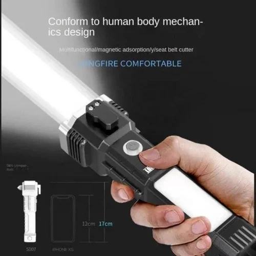 Torch Light,LED 3W Torch Light Rechargeable Torch Flashlight,Long Distance Beam Range Car Rescue Torch with Hammer Window Glass and Seat Belt Cutter Built