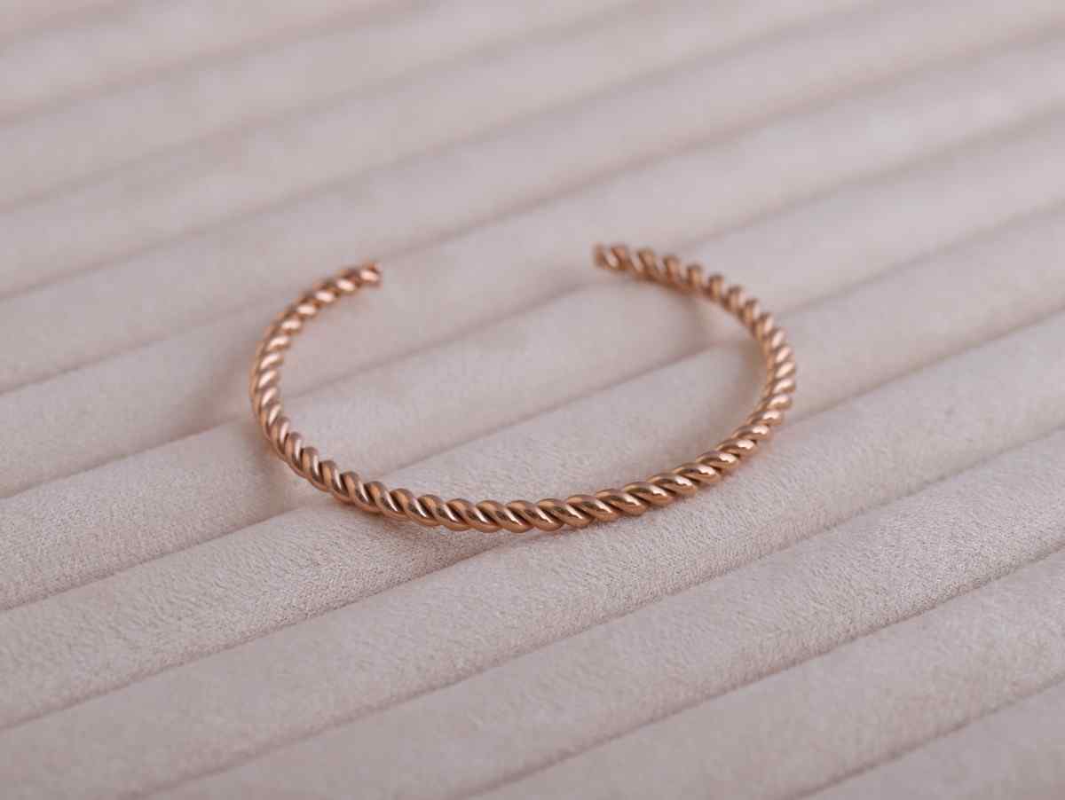 This 18K rose gold plated bracelet showcases a modern twisted rope design with an open kada style, making it a versatile accessory for any outfit. With a free-size fit (inner width 2.5 inches), it is comfortable and easy to wear. Crafted from premium stainless steel, it ensures durability, anti-allergy properties, and a long-lasting shine that never fades. Each bracelet undergoes strict quality checks to deliver top-notch craftsmanship. Perfect for daily wear or special occasions, it also makes a wonderful gift for your loved ones on weddings, birthdays, Valentine’s Day, Mother’s Day, and festive celebrations.