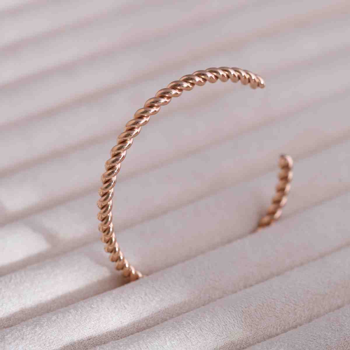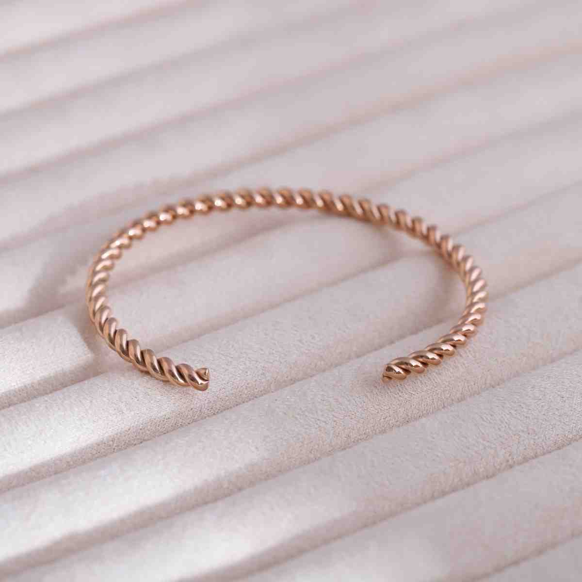 Stylish 18K rose gold plated twisted open bracelet, crafted in stainless steel with a free-size design for women.